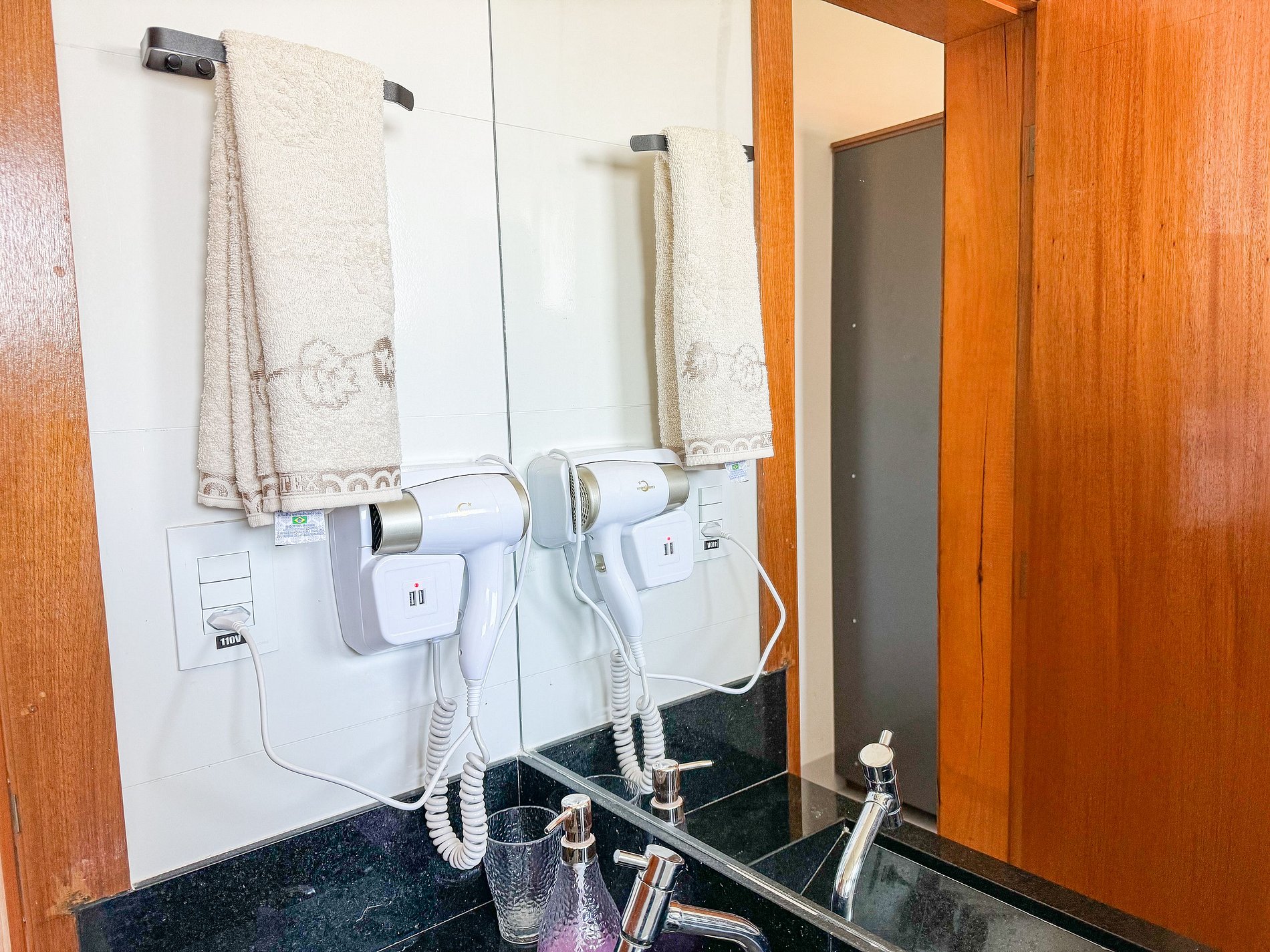 - Roupas de Camas, toalhas, sabonete líquido, shampoo e secador de cabelo